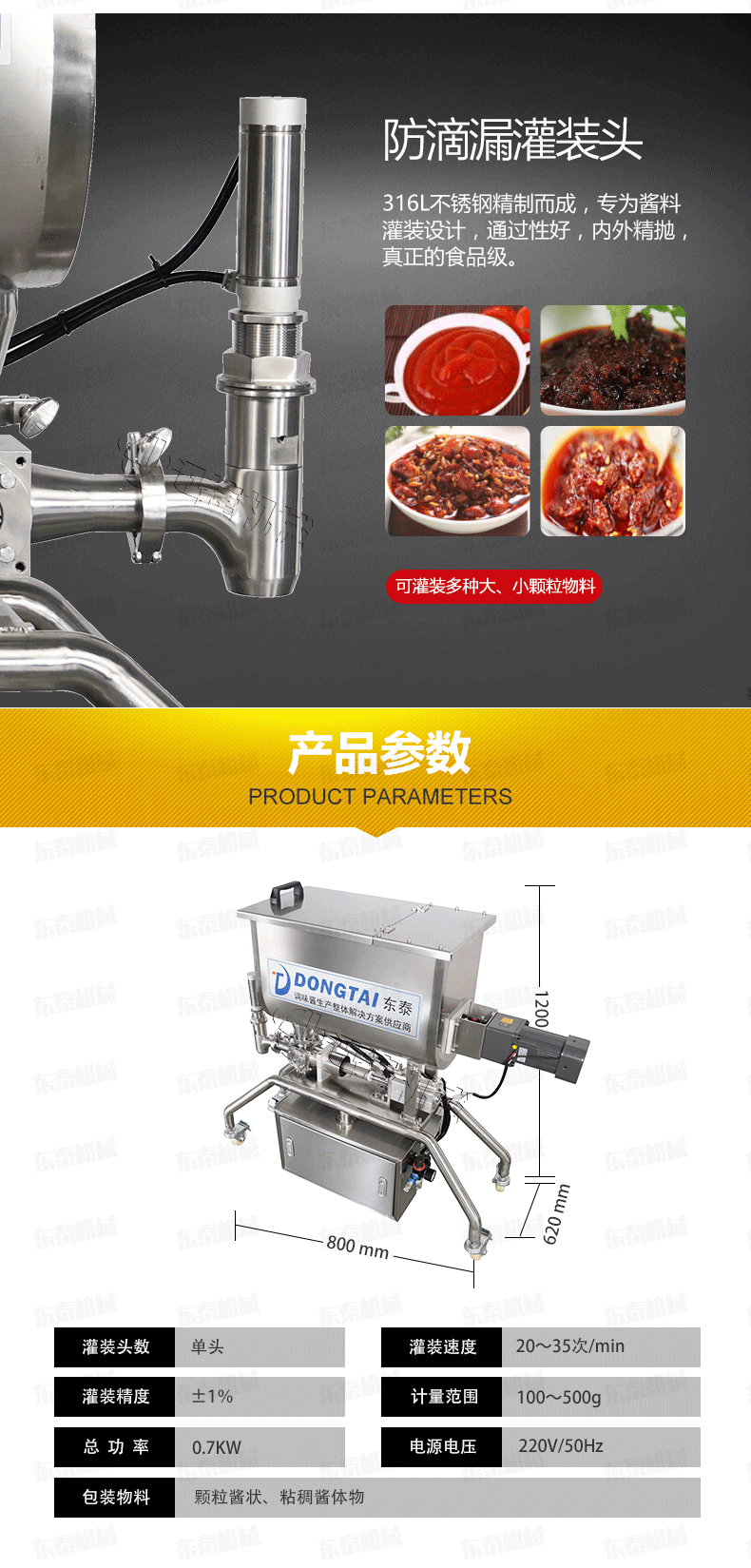2、 醬料灌裝機(jī)設(shè)備全不銹鋼制作,衛(wèi)生、安全;