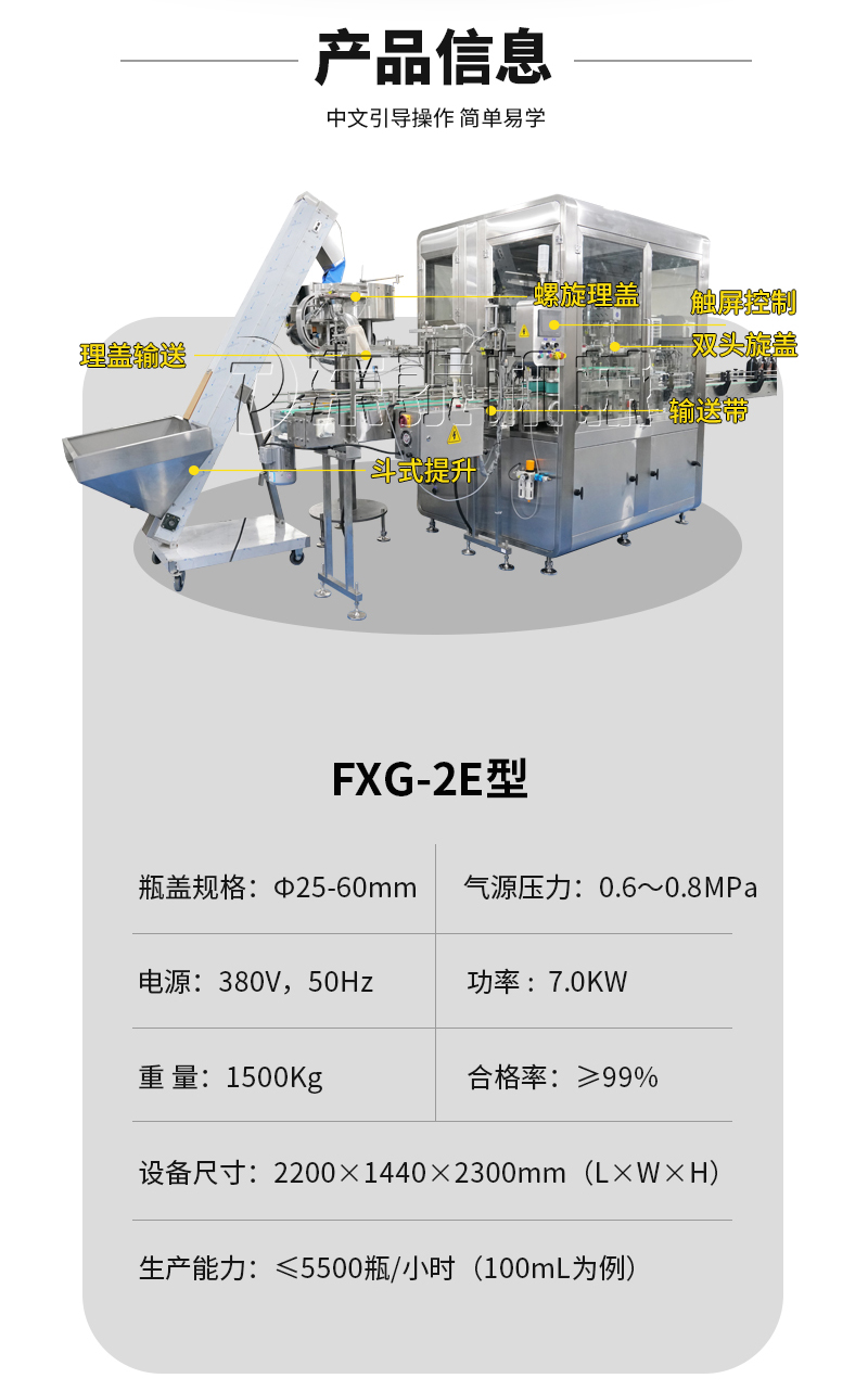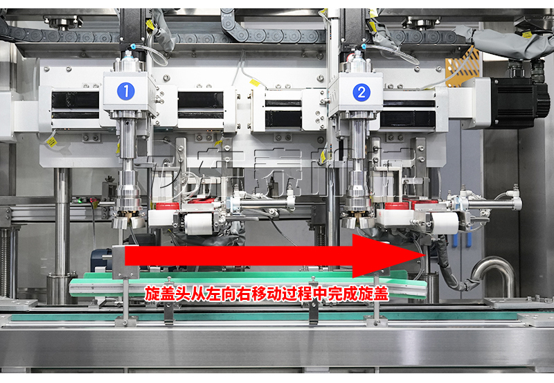 2、品質(zhì)高:跟隨式旋蓋,旋蓋過程不停頓,不晃液,不污染瓶口、瓶身及輸送帶,確