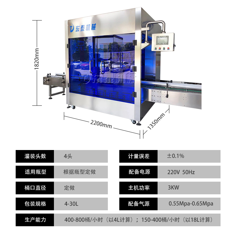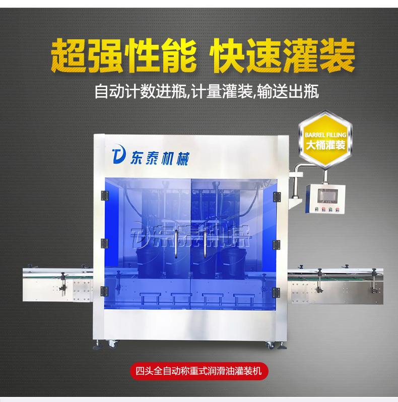 機油灌裝機適用于對4kg-25kg汽車用品類產(chǎn)品:潤滑油、防凍液、車用尿素等液體灌裝。自動完成計數(shù)進瓶、計重量灌裝、輸送出瓶等一系列操作。 特別適用于潤滑油、水劑、食用油的定量灌裝,是食品,醫(yī)藥,化妝品以及精細化工等行業(yè)的理想灌裝機。本機采用可編程控制器(PLC)、高速工控組態(tài)軟件進行實時監(jiān)控的控制,使用調(diào)節(jié)方便。整機按GMP標準要求制作,各管路連接采用快裝方式,拆卸清洗方便,與物料接觸部位及外露部位均采用不銹鋼制造。整機安全、環(huán)保、安全、美觀、能適應各種不同環(huán)境工作。