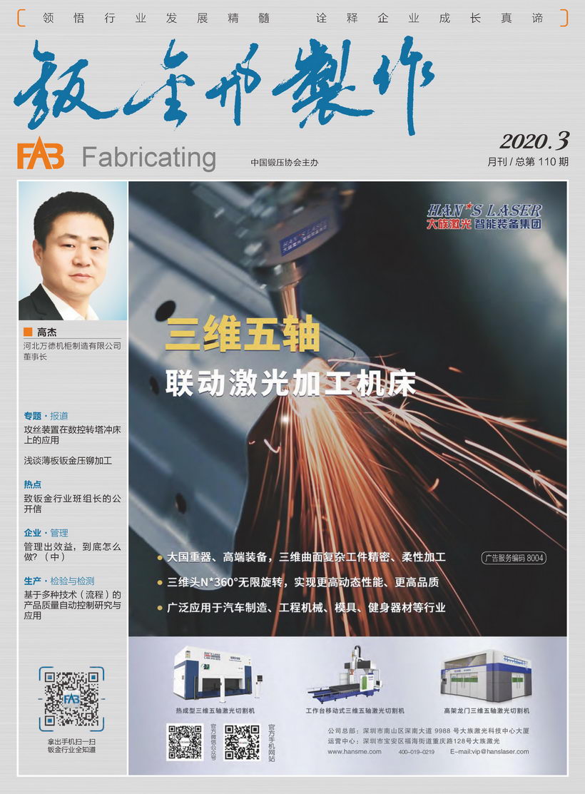 《鈑金與制作》雜志是中國鍛壓協(xié)會主辦的目前國內(nèi)惟一一本面向鈑金制作、管型線材加工行業(yè)的綜合性高端雜志。憑借中國鍛壓協(xié)會多年服務(wù)鈑金和管型線材行業(yè)的優(yōu)勢,努力搭建供應(yīng)商與用戶企業(yè)間的信息平臺,做好政府、高校、科研院所及企業(yè)間溝通的橋梁。