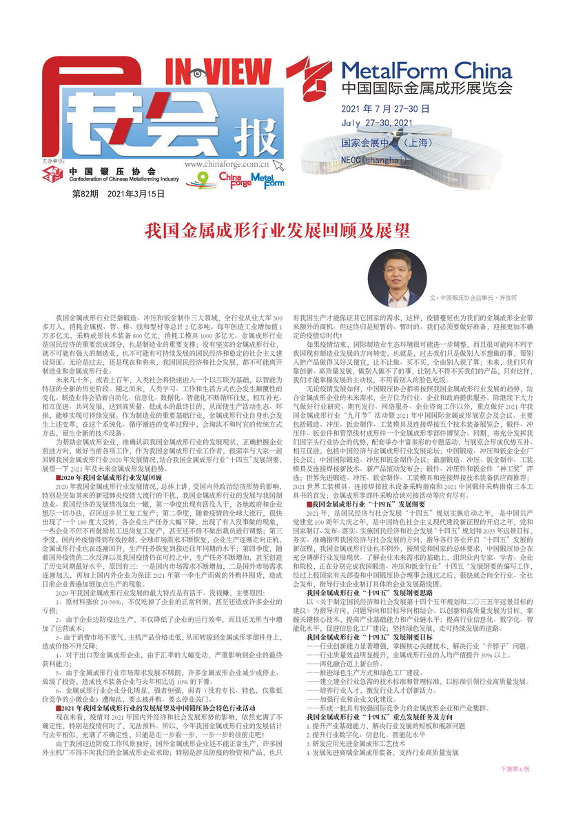 中國國際金屬成形展覽會,由中國鍛壓協會始創于1990年的北京鍛造展和金屬零部件博覽會,與創辦于2004年的上海沖壓展和鈑金展,于2007年在北京合并而成。其中,鍛造展是世界唯一單獨舉辦的專業展覽會,展示規模和水平很高;沖壓和鈑金制作展,是世界七大同類專業名展之一,是國內唯一的全國性沖壓和鈑金加工專業展!