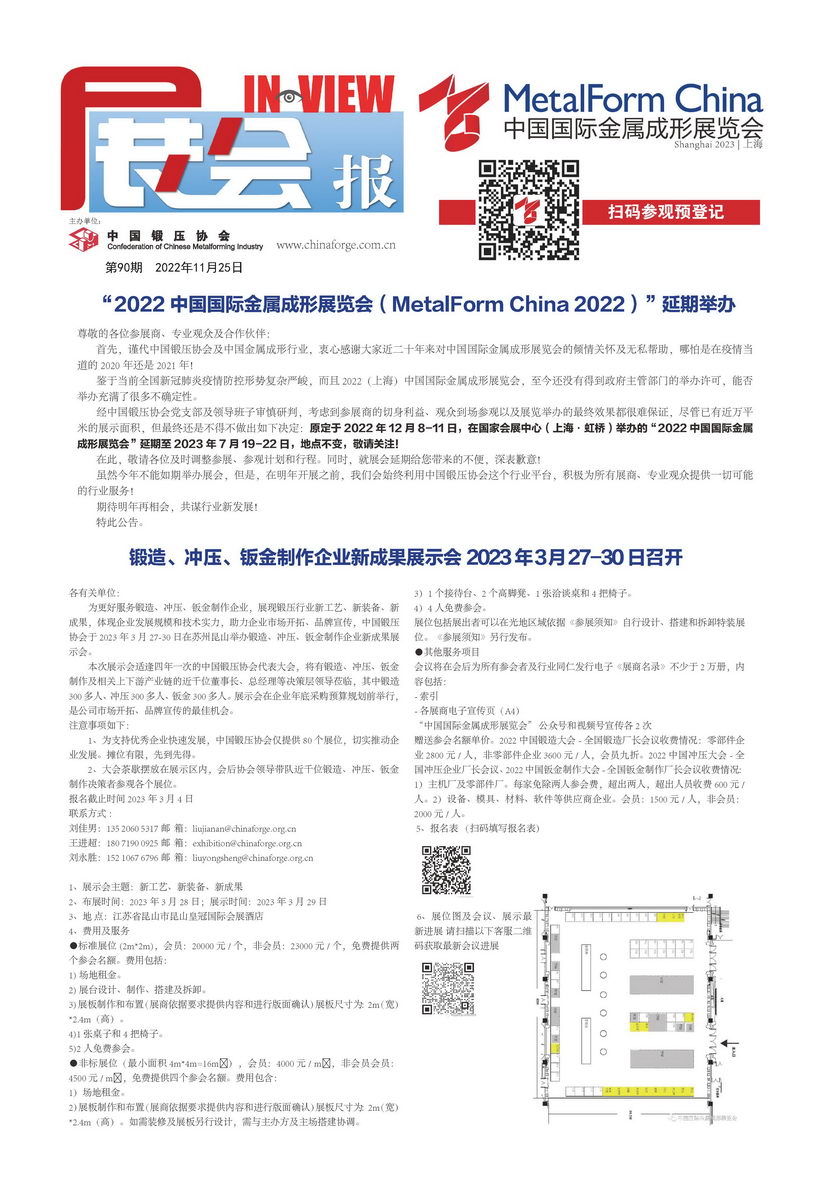 中國國際金屬成形展覽會,由中國鍛壓協會始創于1990年的北京鍛造展和金屬零部件博覽會,與創辦于2004年的上海沖壓展和鈑金展,于2007年在北京合并而成。其中,鍛造展是世界唯一單獨舉辦的專業展覽會,展示規模和水平很高;沖壓和鈑金制作展,是世界七大同類專業名展之一,是國內唯一的全國性沖壓和鈑金加工專業展!