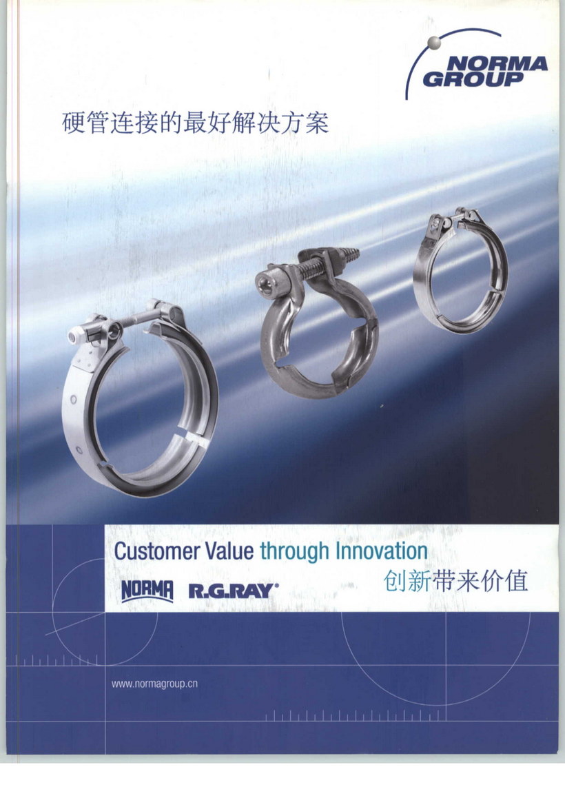 NORMA集團除了生產(chǎn)常用的渦輪蝸桿卡箍外,還針對渦輪增壓發(fā)動機和柴油發(fā)動機設計并生產(chǎn)了多種類型的帶v型槽的卡箍。此產(chǎn)品冊主要介紹了集團旗下NORMA和R.G.RAY兩大品牌的槽型卡箍。NORMA品牌的該類卡箍主要應用在造船、火車機車等大型柴油發(fā)動機上。R.G.RAY品牌的槽型卡箍主要被廣泛用于柴油發(fā)動機和渦輪增壓發(fā)動機。