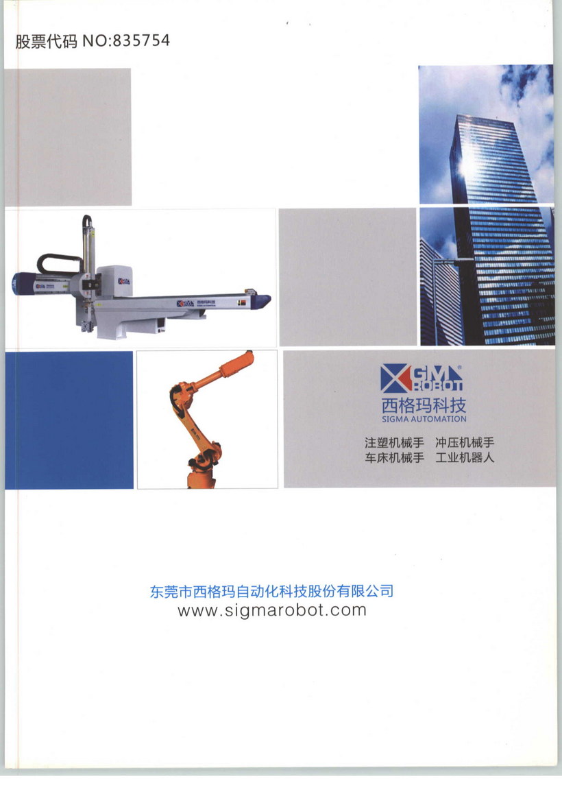 東莞市西格瑪自動化科技股份有限公司為致力于射出成型注塑機之專用機械手臂的研發、生產、銷售及服務的高新技術產業。 產品內容包括:全伺服式機械手、橫走式機械手、縱走式機械手、斜臂式機械手、立式注塑機專用機械手等十大系列機械手,可搭配15噸到4000噸的各型射出成型注塑機,為您量身打造最佳自動化解決方案;產品廣泛應用于:家電業、計算機及周邊產業、光電業、化妝品包裝、汽車及其零部件、事物機器零件業、精密齒輪業、PET瓶胚業、家庭日用品業、手機通訊業、醫療用品業、食品包裝業……等等。