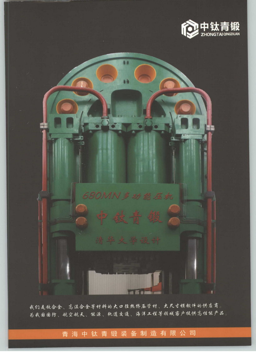 青海中鈦青鍛裝制造有限公司,位于海東市樂都工業園區,占地面積27萬平方米,現有注冊資本10億元,總資產為14億元,現有員工200人,其中技術人員60人。中鈦青鍛具備獨立研發、生產大口徑管材、棒材及大尺寸模鍛件的能力,可熱擠壓直徑1500mm、長度18m的各種規格鈦合金、高溫合金等新材料大口徑管材/大尺寸棒材和大尺寸模鍛件。擁有從開坯、鍛造、熱擠壓/模鍛到熱處理、加工、檢測等完整的加工生產能力,具備生產設備百余臺套。