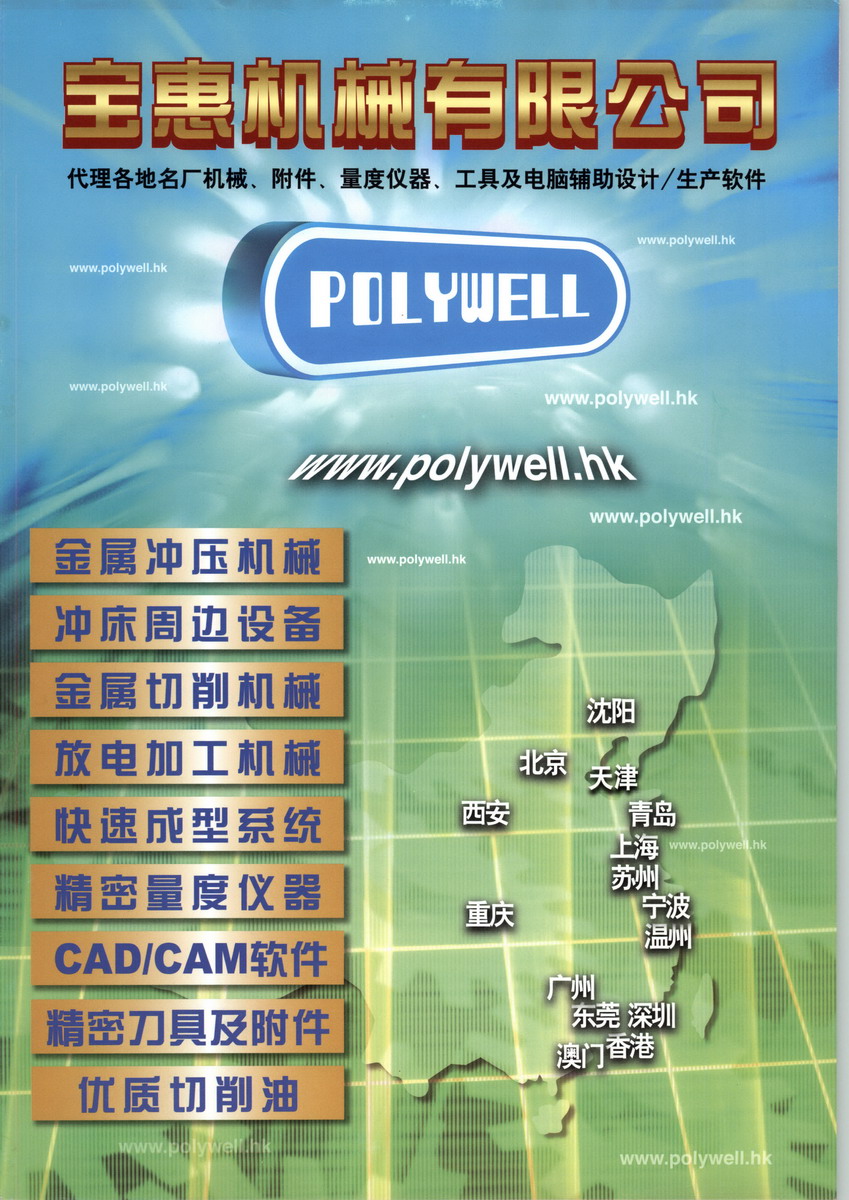 寶惠機械有限公司成立于一九九零年,主要代理機械業務。 為配合本地工業對高質素高精度機床產品的要求, 公司從世界各地引進各種精良電腦數控機械,包括模具設備 (如加工中心、火花機、線切割機、磨床等等)、鈑金設備 (激光切割機、液壓轉塔沖床、液壓彎板機等等)、車床設備 (車削中心 、傳統車床等等) 及特殊機械設備 (齒輪加工機、快速成型系統等等)。 八十年代中國開始實施經濟開放政策,為節省生產成本,越來越多的本地廠家北移及擴充規模,基于此種發展趨勢,公司在東莞設立維修服務中心,向客戶提供快捷的維修服務,現時維修服務部有員工超過150人(香港及國內),各服務工程師均經過嚴格訓練并分為不同組別,以保證專業服務的質素。 現今科技日新月異,機械行業亦向高科技精密產品發展?!笇毣荨辜磿r把握機會, 引入激光切割機、等離子切割機、鐳射雕刻機及快速成形系統等先進機械,令產品更加多元化。為掌握行業動向及最新生產技術,「寶惠」的資深工程師經常參觀國外之機械展覽會,以適時引進先進機械設備,保持與世界機械工業的同步發展。 「寶惠」之宗旨是向客戶提供一站式服務,除協助客戶選購高質素及合適之機械外,更向客戶提供有關配套設備 (包括機床附件、刀具系統、電腦軟件、售前及售后服務),其中先進科技部,專責為客戶提供電腦輔助設計軟件、立體激光掃描系統及三座標測量機等高科技產品以及相關專業訓練課程。 為滿足中國客戶對精密先進機械不斷增長之需求,「寶惠」分別在北京、上海、重慶、廣州、西安及瀋陽等國內重要城市設立辦事處,藉此向國內客戶介紹先進機械及協助客戶更新改造現有設備。 為向客戶介紹最新型機械及先進生產技術,公司每年必參加本地及國內十多個機械展覽,并于陳列室舉行的大型展銷會及研討會,提供客戶與制造商直接交流的機會,此外,公司按時舉辦先進機械考察團、在各種工業雜志及報紙刊登廣告、印制公司資訊,加強客戶對公司產品的了解和信心。 「寶惠」之目標是 “立志成為中國及香港機械行業最優質服務的提供者”。 公司將不斷引入先進技術及精密機械,提供優質完善服務,與時并進,與客戶共同發展。